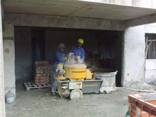 bombeamento e aplicação por projeção para revestimentos internos e externos.