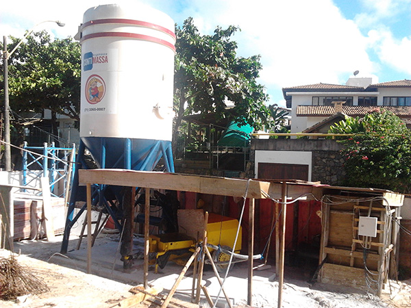 Não é necessária a betoneira, pois a mistura é feita no próprio silo.
